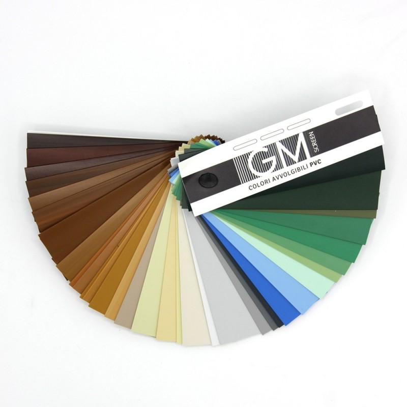 Mazzetta colori tapparelle in pvc: Elioscreen, Serena, Genova, Roma.