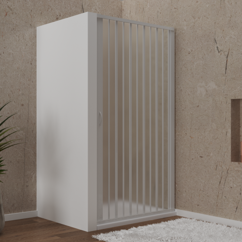 Box doccia estensibile minimo ingombro in PVC, disponibile a 1 anta apertura laterale reversibile o 2 ante apertura centrale.