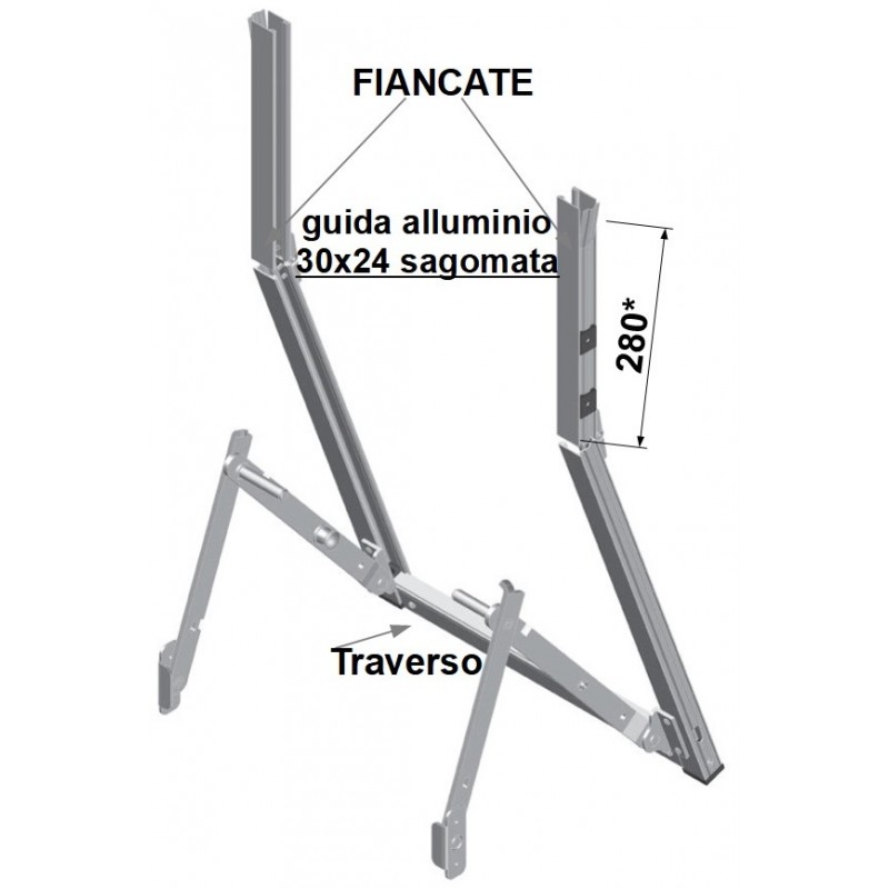 LARGHEZZA MAX 200 cm. Apparecchio a sporgere in ALLUMINIO con leva centrale. Guida alluminio 30x24 mm sagomata